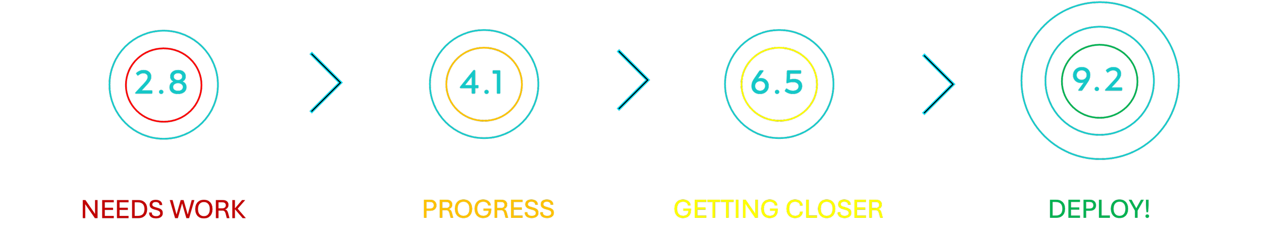 This process is repeated until an optimal score is achieved indicating exactly when to stop revisions and deploy the individual assets or campaign for peak performance.